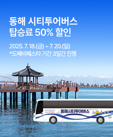 동해시 동해시 시티투어 버스 탑승료 50% 할인 페이지 정보 작성자 관리자 댓글 0건 조회 1,686회 작성일 25-07-01 09:39 본문 -기간: 2025. 7. 18.(금) ~ 7. 20.(일) *도째비페스타 3일간 진행 [이 게시물은 관리자님에 의해 2026-02-03 09:33:11 프로모션에서 이동 됨] 관련링크 https://www.dh.go.kr/tour/contents.do?key=1673 975회 연결 목록 이전글[홍천]동키마을 당나귀 승나체험 4,000원 할인 25.07.01 다음글동해시 무릉계곡(관광지 입장료 50% 할인) 25.07.01