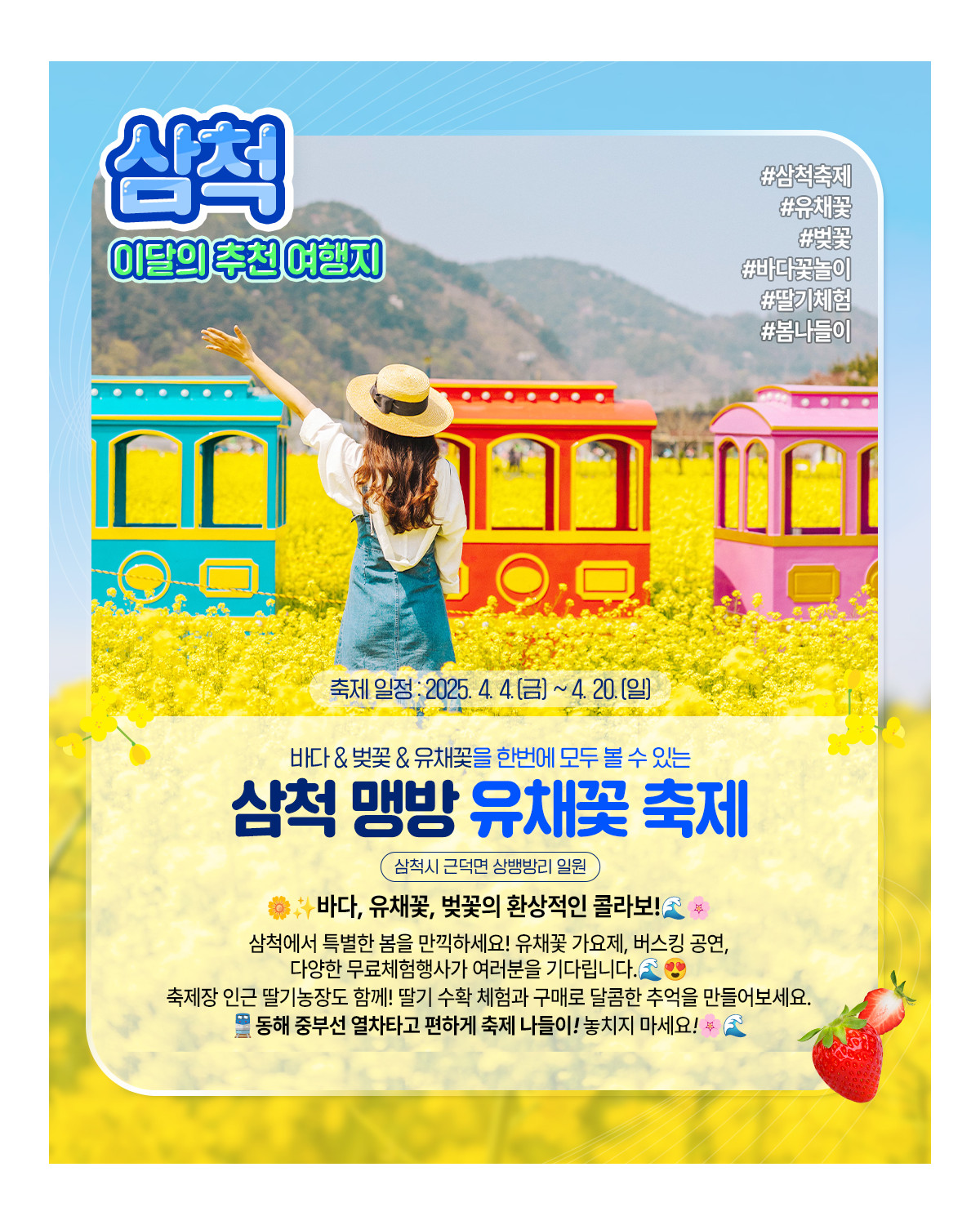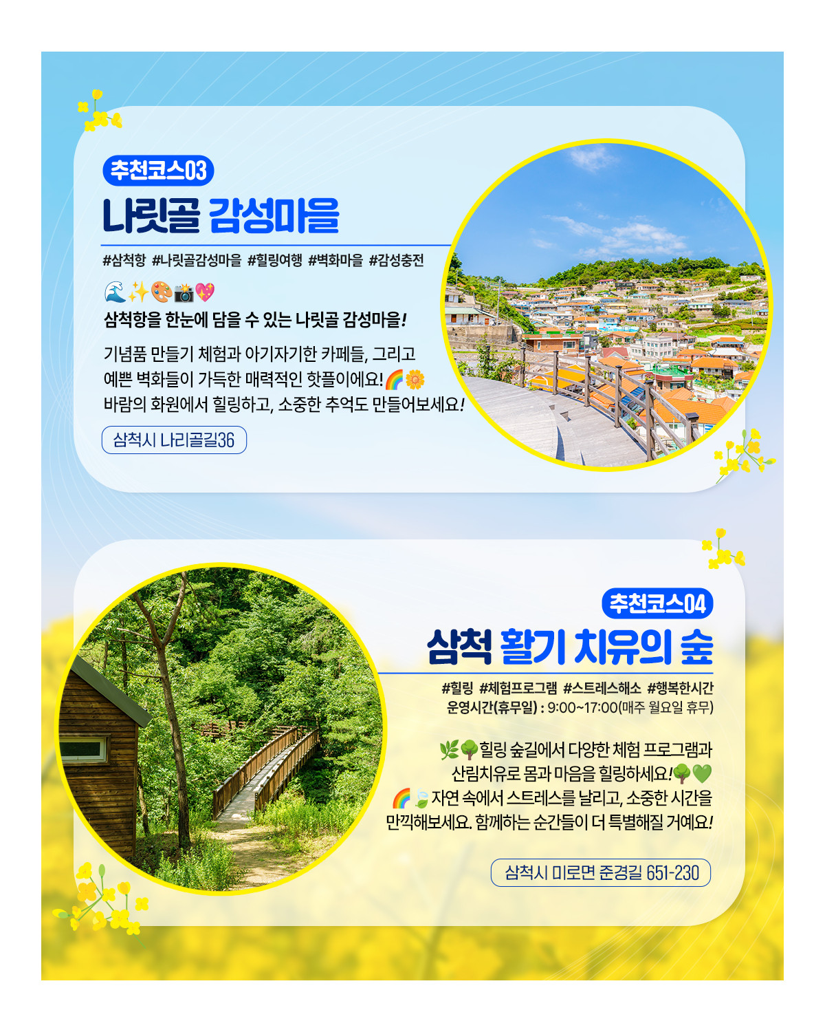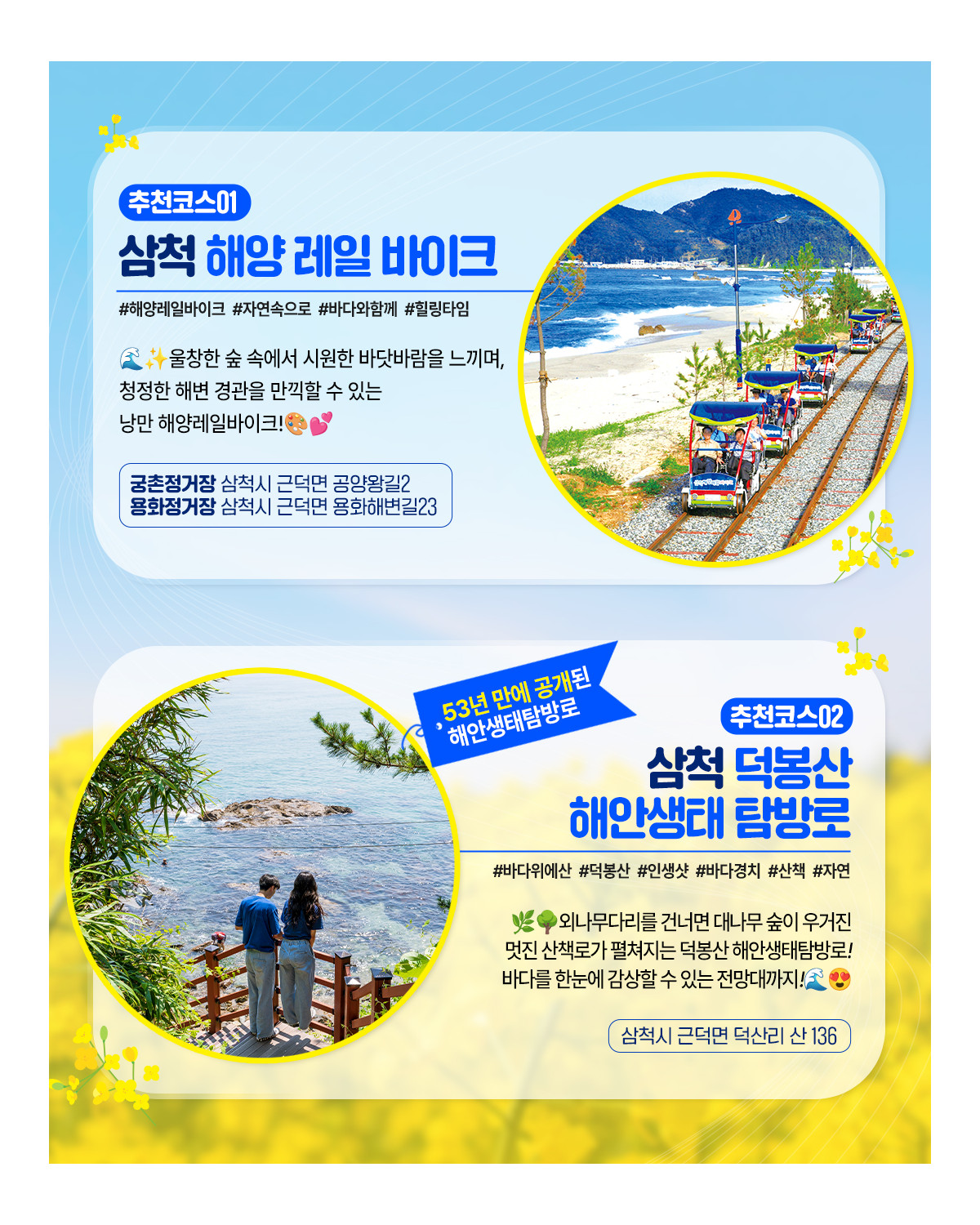 #삼척맹방유채꽃축제#해양생태탐방로#삼척 해양레일바이크#나릿골 감성마을#삼척 활기 치유의 숲
